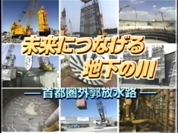 未来につなげる地下の川-首都圏外郭放水路- 企画:建設省関東地方整備局江戸川河川工事事務所 典型的な都市河川である中川と綾瀬川、この流域での急激な都市化による人口増加により大降雨時の浸水被害は甚大なものとなっていました。この浸水被害を抜本的に解消する「首都圏外郭放水路」は国道16号沿いに内径10mの地下放水路を延長6.3kmに亘って建設する事業で、5つの流入施設と立坑、地下トンネルと調圧水槽および排水機場で構成されるものです。 |