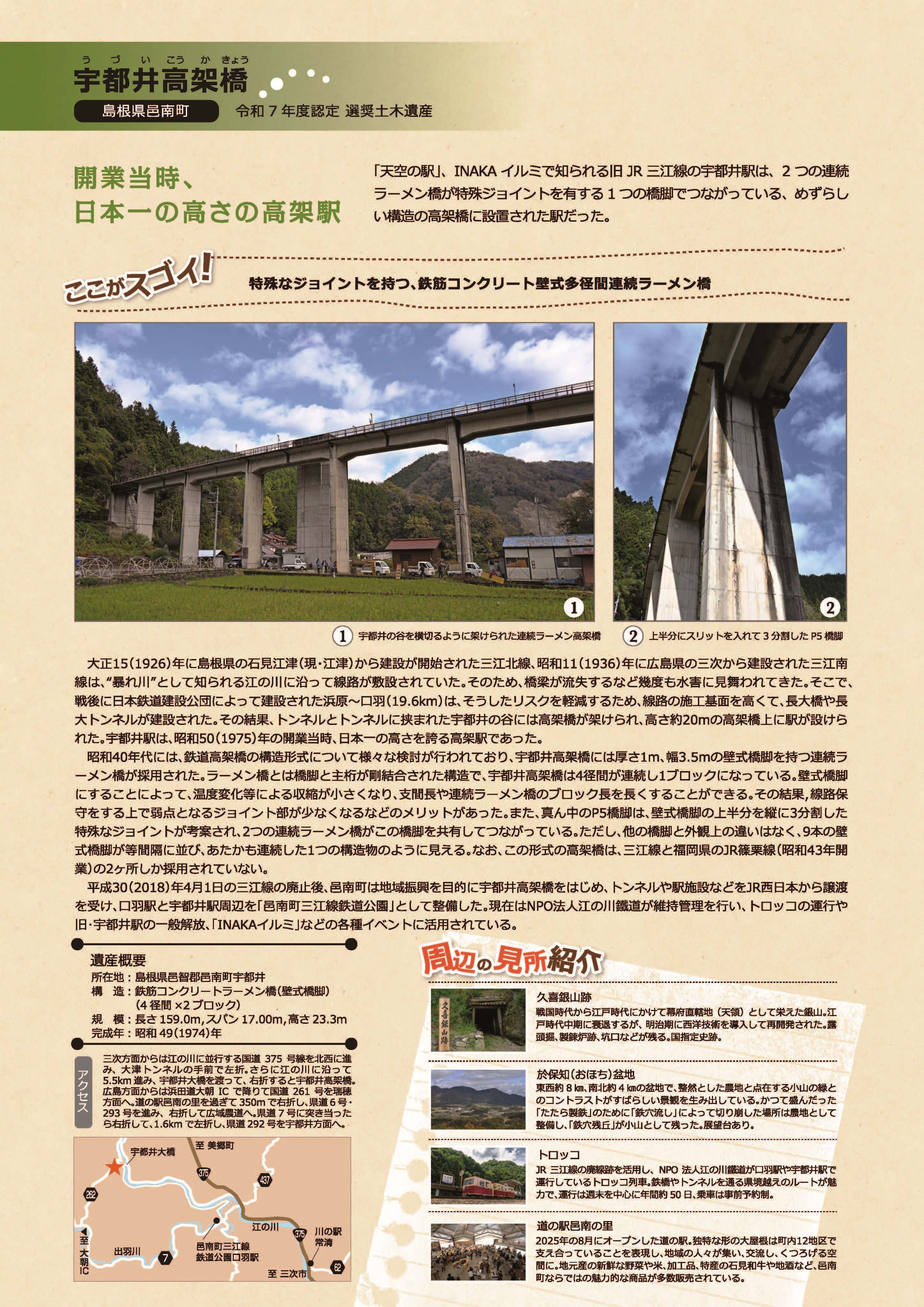 土木学会では平成12年(2000)年度より下記の趣旨のもとこれらの土木遺産の中から毎年20件程度を「選奨土木遺産」として認定しています。