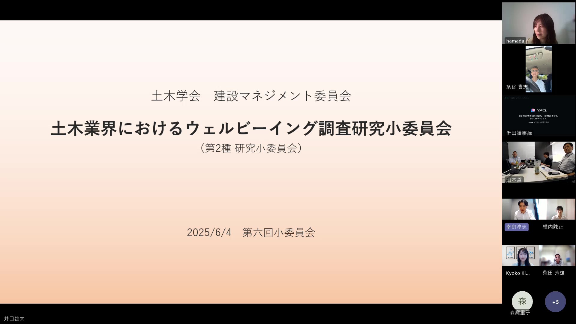 アンケート調査における設問について議論を深めました。また土木学会全国大会で行われる、研究討論会について企画案を共有しました。
