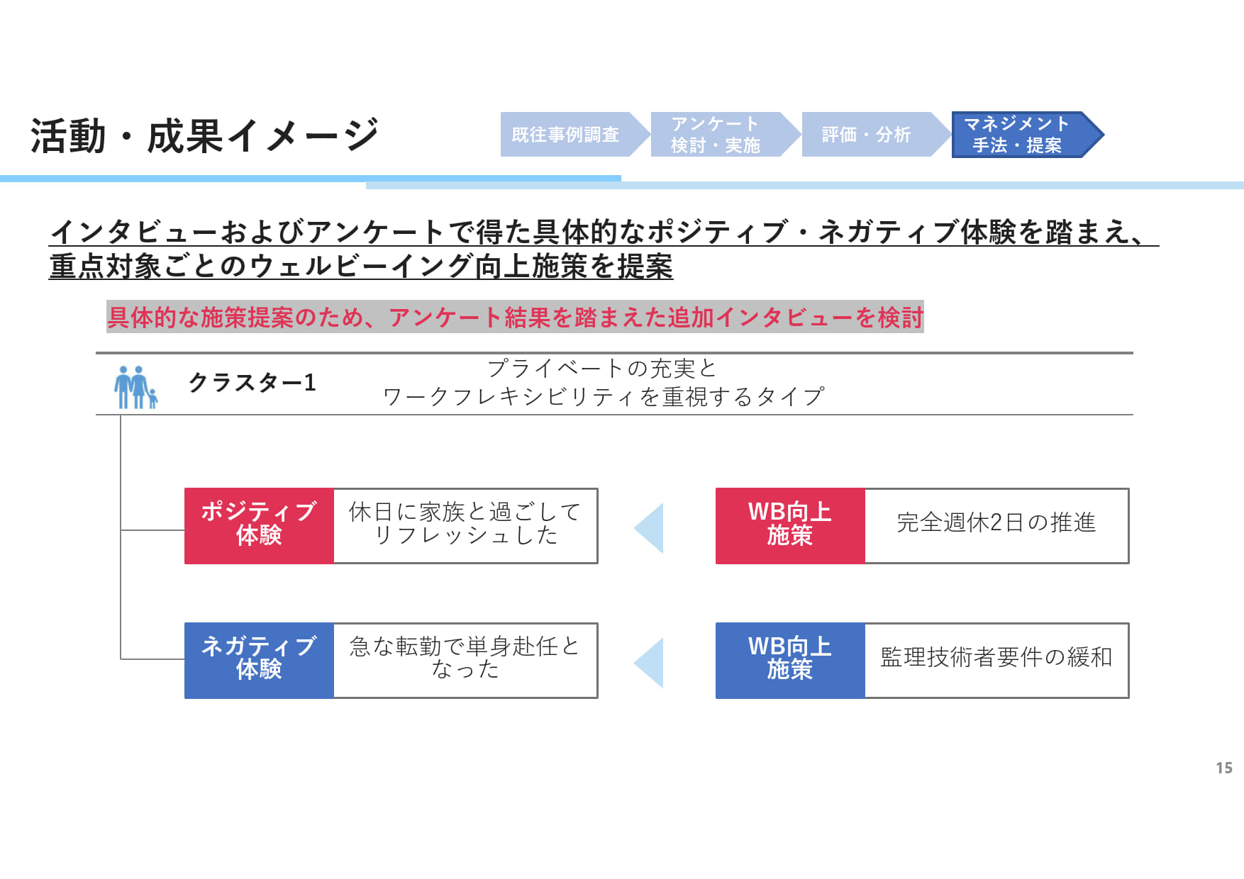アンケート集計結果、マネジメント手法提案の方針について議論を深めました。
