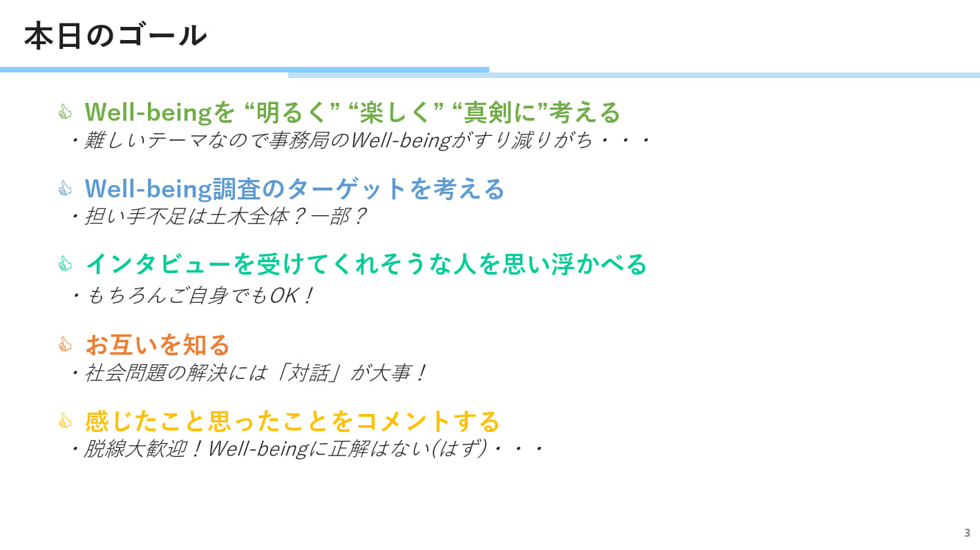 今後のインタビュー調査手法について議論しました。またウェルビーイングに関する情報共有をしました。