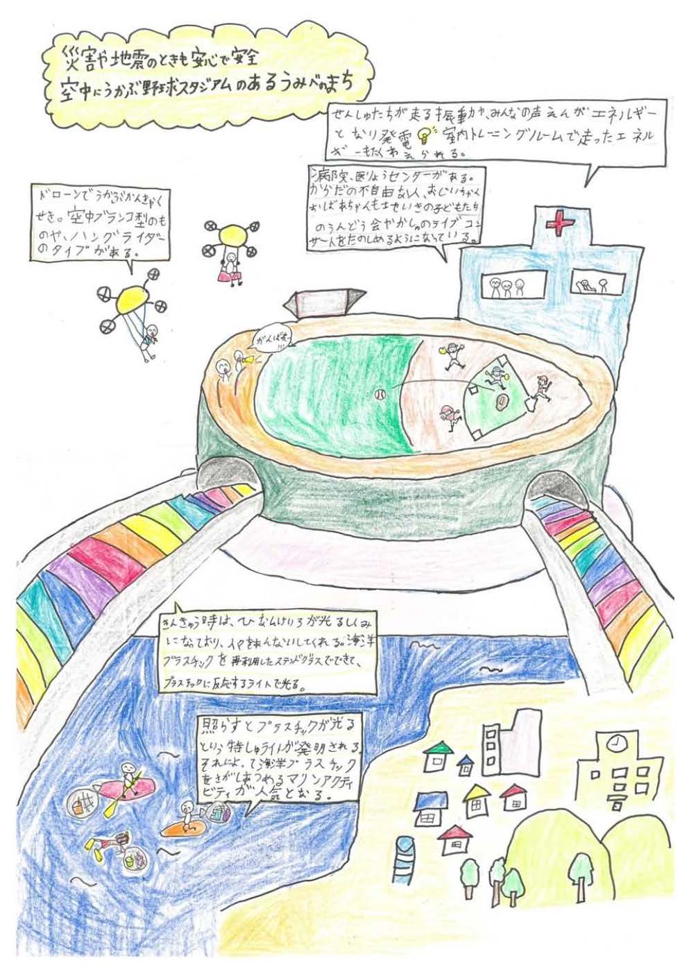 | 倉知 稜英 さん(千葉県) | 災害や地震のときも安心で安全 空中にうかぶ野球スタジアムのあるうみべのまち | ![]() |