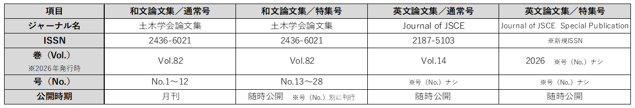 ※「Journal of JSCE Special Publication」掲載は、2026年掲載分(旧:Journal of JSCE Vol.14, No.2, 2026)から開始