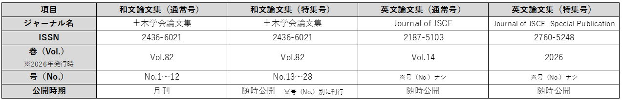 ※「Journal of JSCE Special Publication」掲載は、2026年掲載分(旧:Journal of JSCE Vol.14, No.2, 2026)から開始