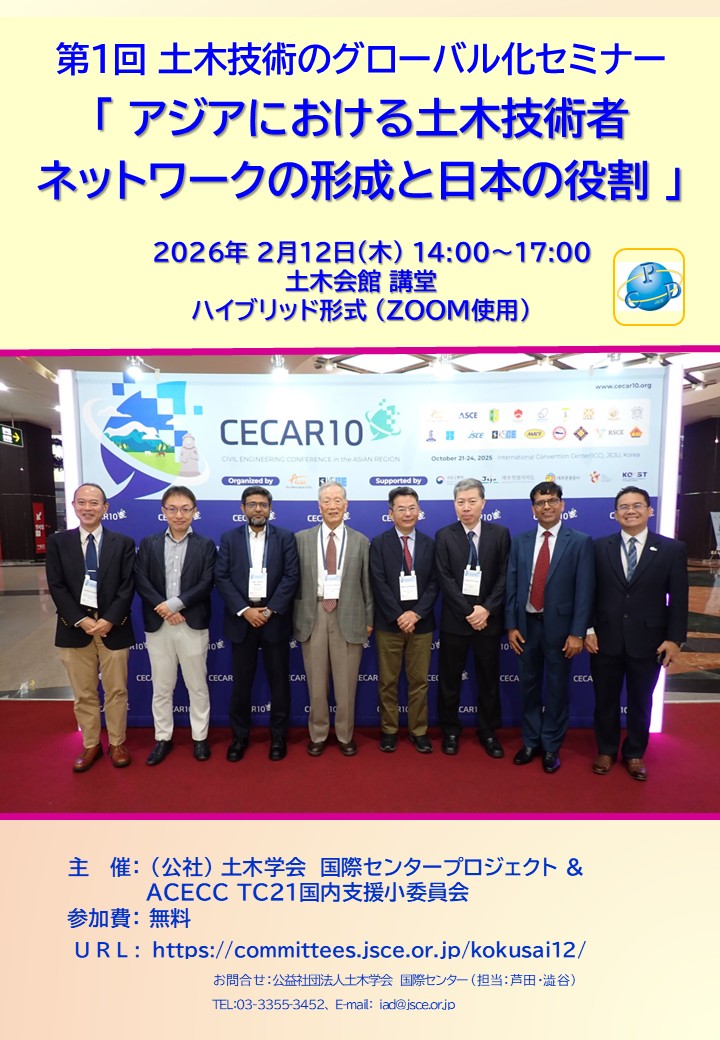2026年2月12日(木):第1回土木技術のグローバル化セミナー:アジアにおける土木技術者ネットワーク形成と日本の役割