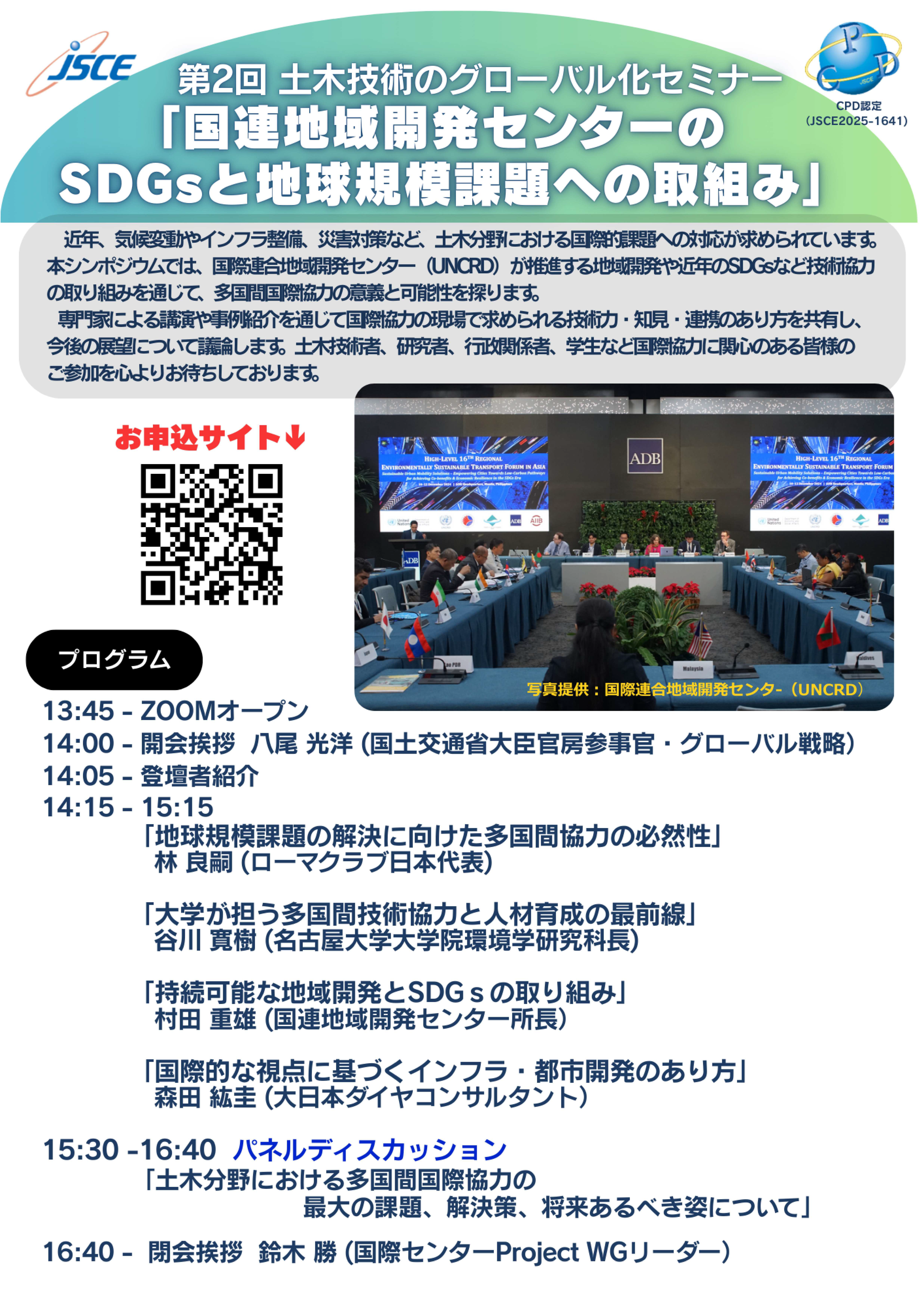 第2回 土木技術のグローバル化セミナー「国連地域開発センターのSDGsと地球規模課題への取組み」