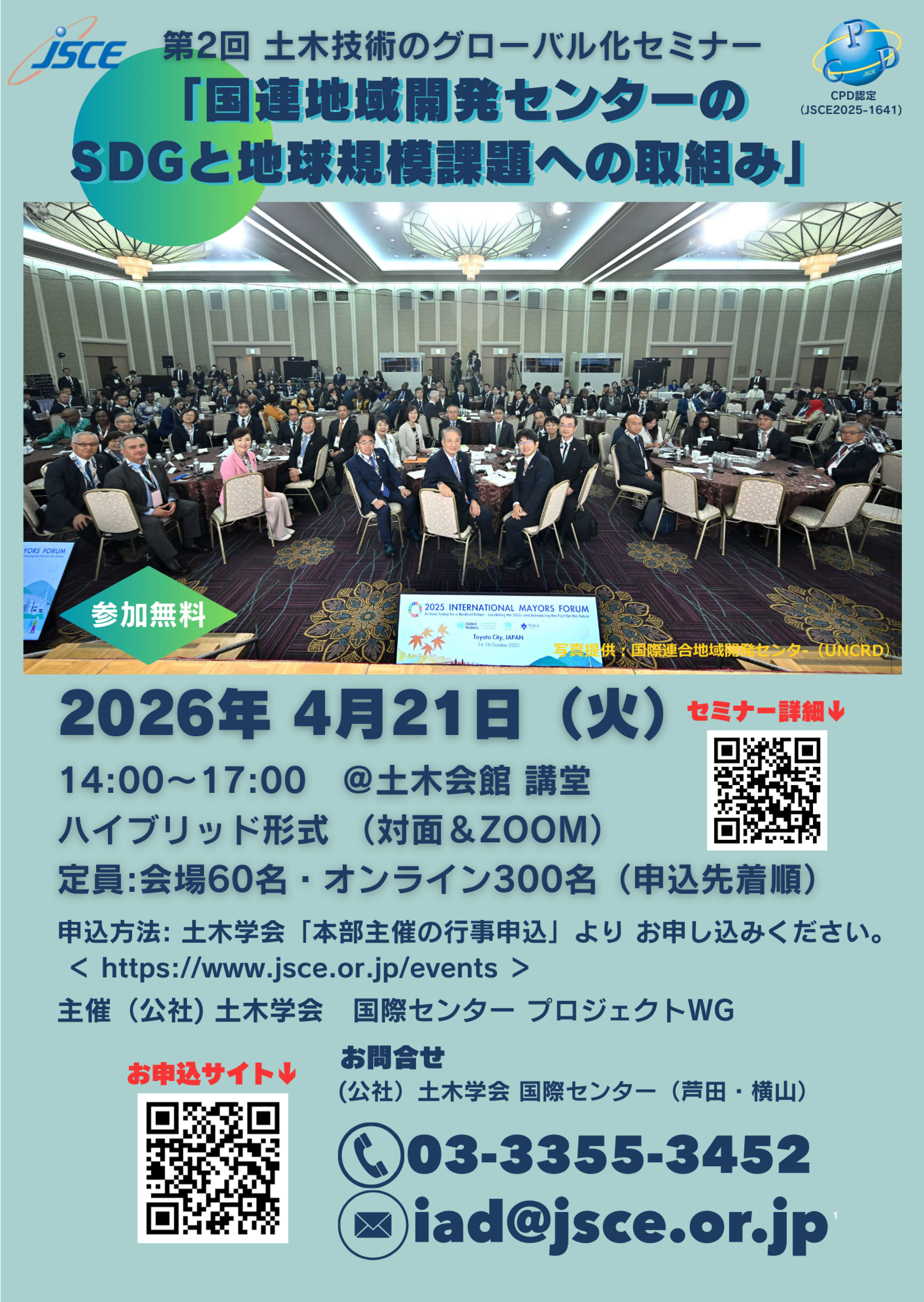土木技術者、研究者、行政関係者、学生など国際協力に関心のある皆様のご参加を心よりお待ちしております!